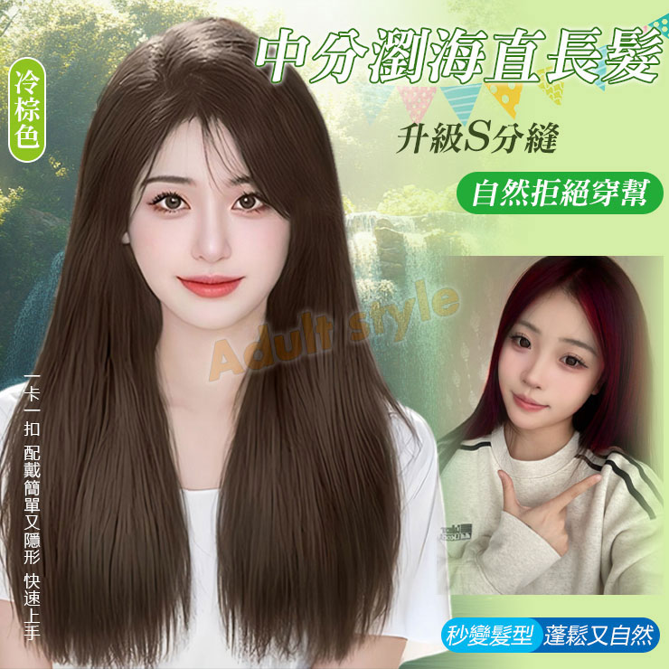浪漫氛圍中分瀏海長直髮(冷棕色)